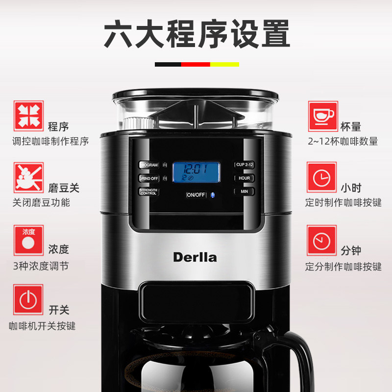 Germany Derlla automatic coffee machine Household small grinding one American semi-mini fresh grinding office