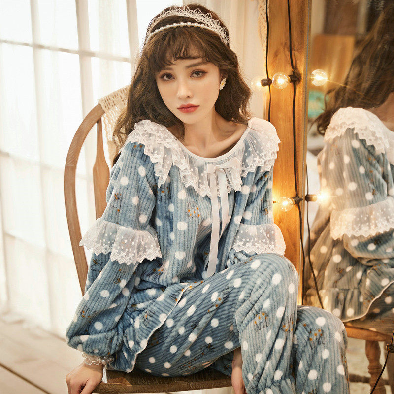 Women's Pajamas 2022 New Coral Fleece Thickening Sweet Cute Fairy Palace Princess Style Homewear Set - Taobao