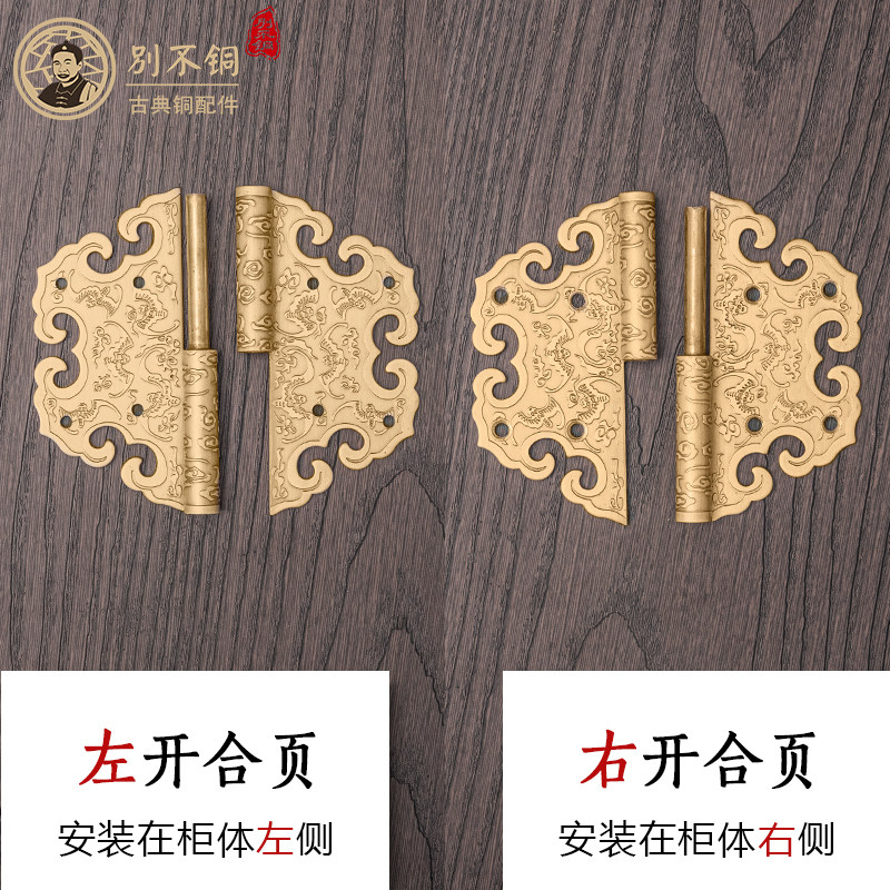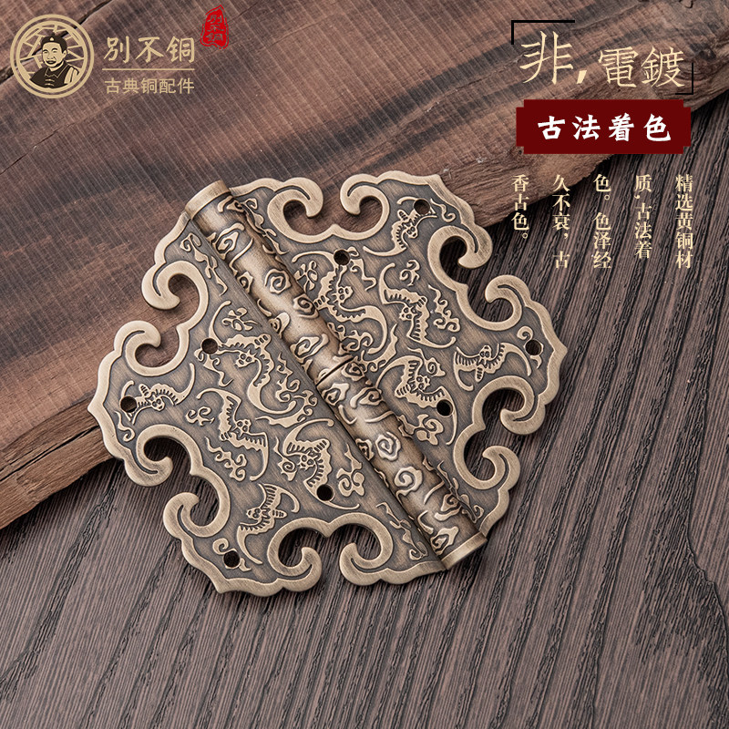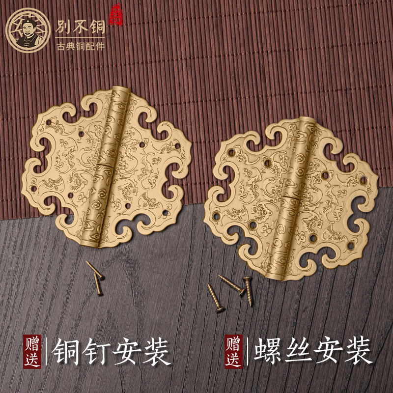 Old-fashioned Vintage Solid Wood Furniture copper hinges Red wood furniture Hexagonal Ruyi head brass hinge doors and windows Screen folding page