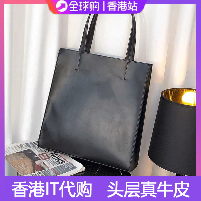 Hong Kong's new men's business handbag trendy black cow leather casual bag vertical paper bag briefcase briefcase