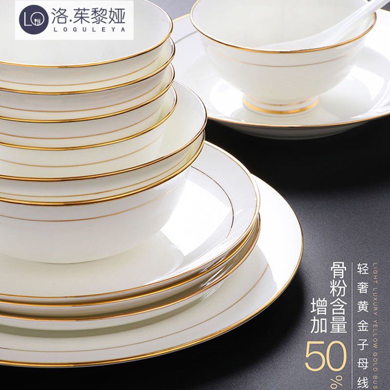 LO GULEYA Phnom Penh Bone Porcelain Bowl disc suit Home Ceramic Tableware Creative Minima Light Extravagant to combine Yangchen