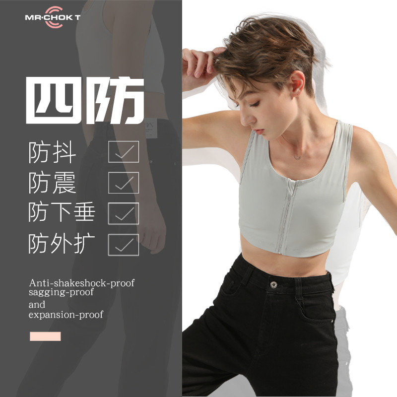 MRCHOKT zipper corset les underwear schoolgirl sports anti-shock anti-sagging summer breast tightness show small chest