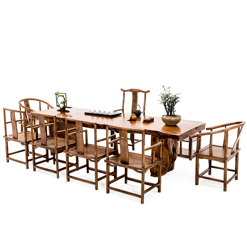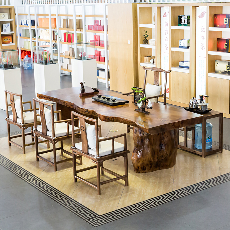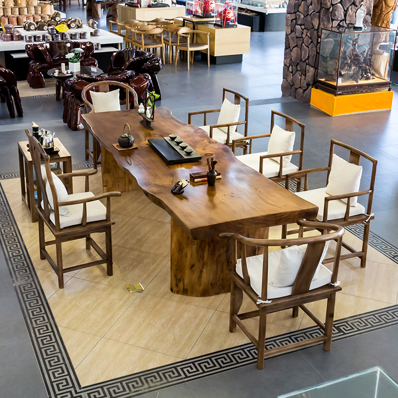 High-end custom log large plate table solid wood tea table and chairs combination minimalist modern tea table owner desk furniture