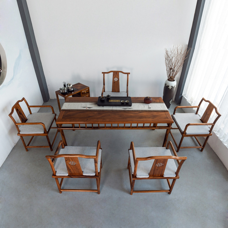 Building tea table household new Chinese kung fu tea table and chair combined solid wood tea table minimalist modern tea table Zen
