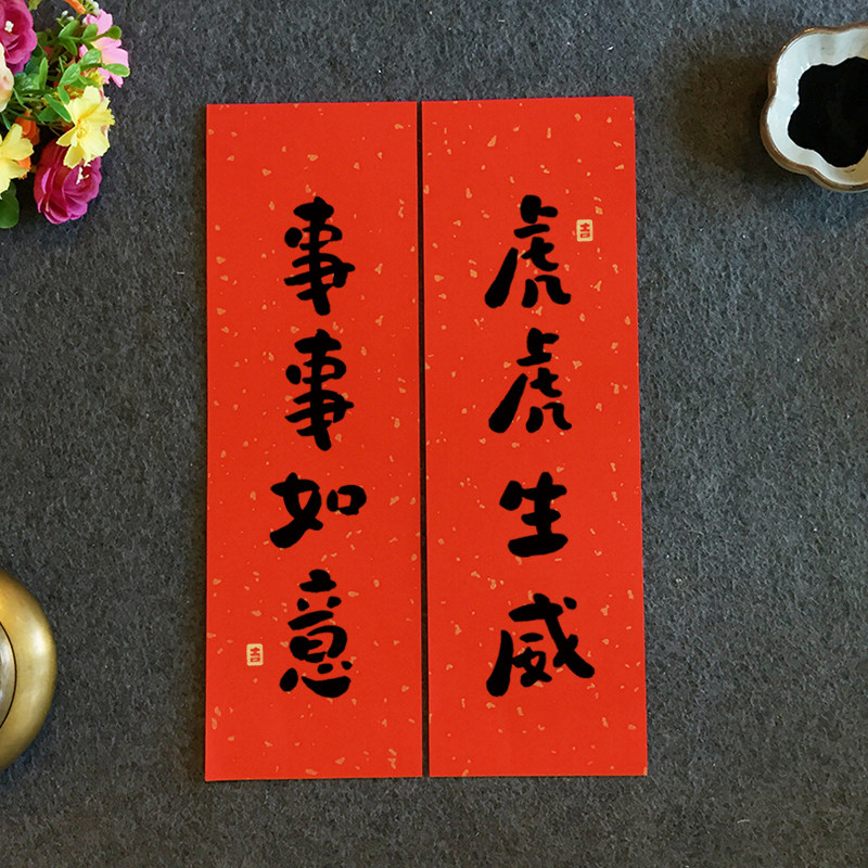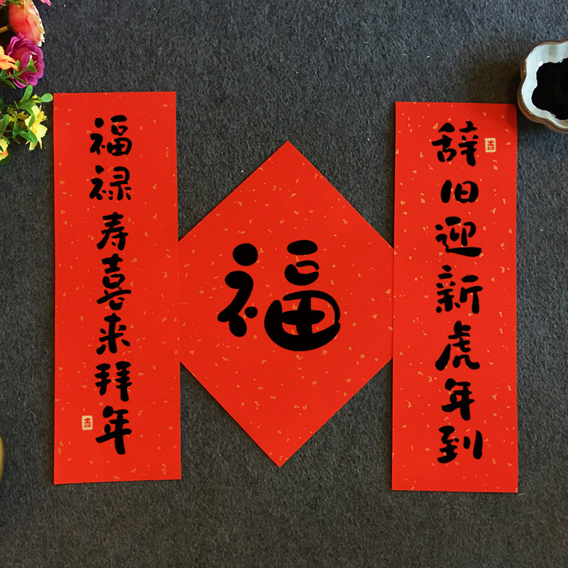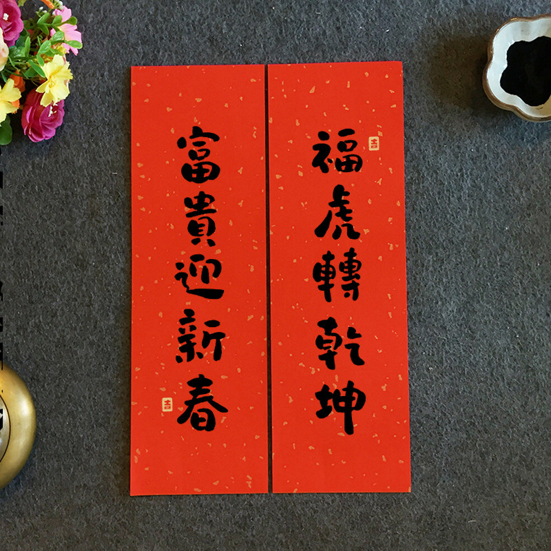 2022 Year of the Tiger Small Pair Lian Chun Lian New Home New Year Festive Decoration Creative Door Sticker Door Link Content Handwritten Customization