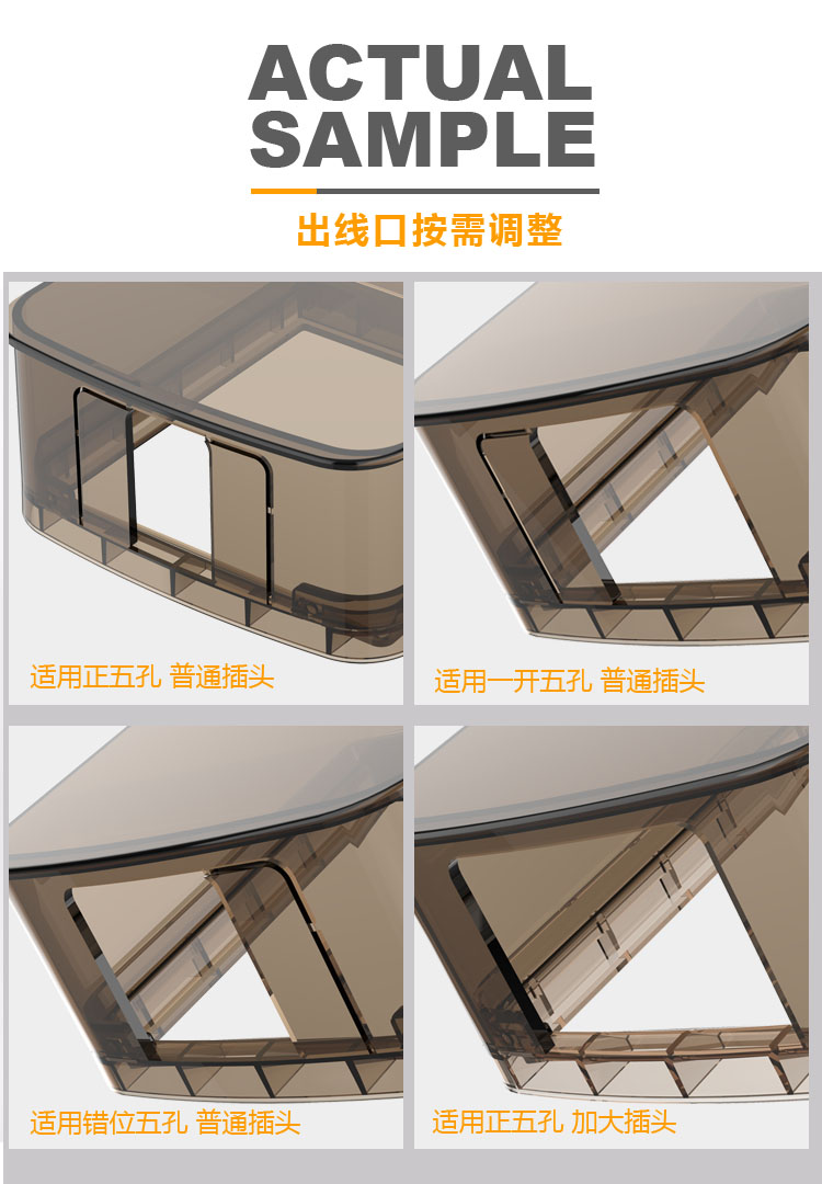 Type 86 adhesive splash-proof box dislocation five-hole open 5-hole socket waterproof hood case kitchen self-adhesive grey transparent