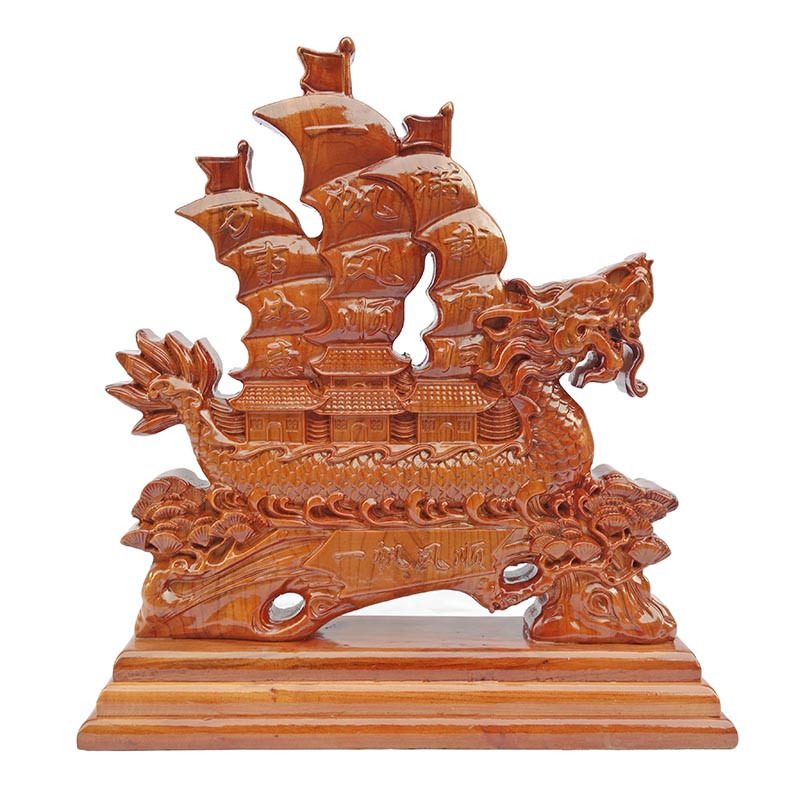 Peach wood carving dragon boat ornaments smooth sailing sailing high-end solid wood lucky living room office porch Feicheng town house