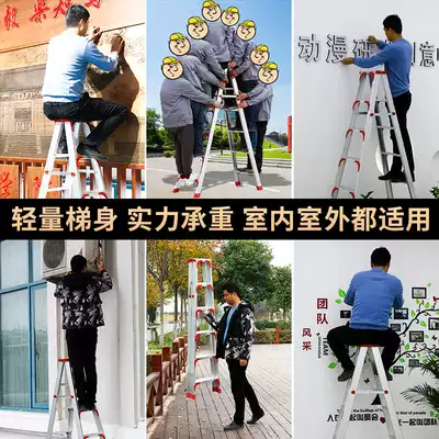 Ladder household folding telescopic aluminum alloy herringbone ladder thickening engineering ladder indoor climbing multi-function stairs 2 meters