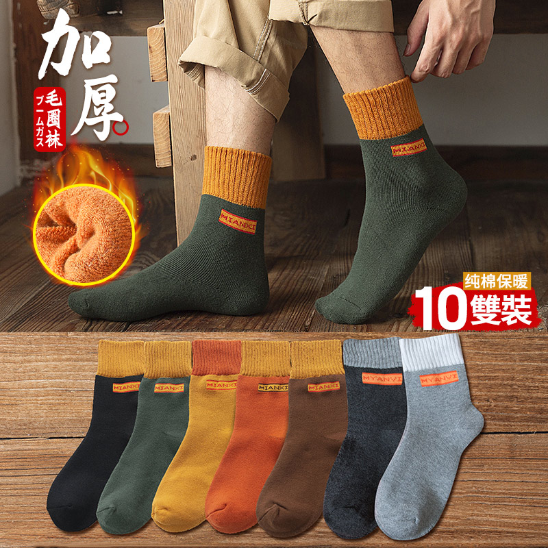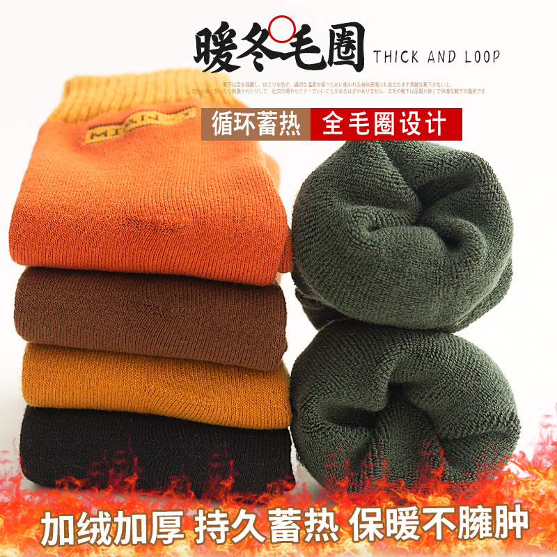 Socks male midcylinder thickened with velvety warm autumn winter cotton socks long cylinder wool winter stockings woolen loops towel stockings-Taobao