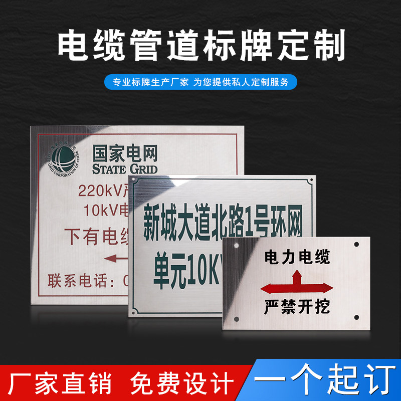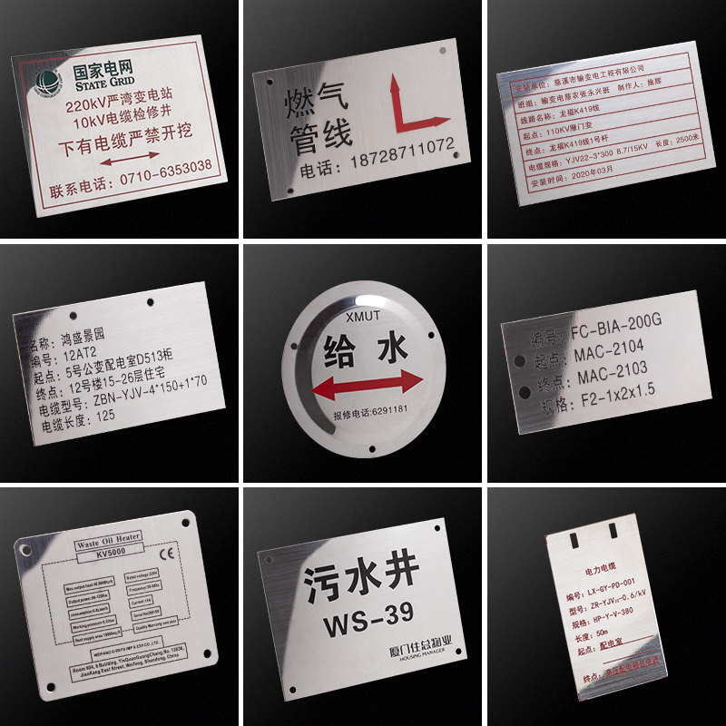 Set to make metal white steel cable signage custom power gas water supply pipe path towards warning warning ID card stainless steel placard with wire listing to make rainwater well sewage well hanging plate