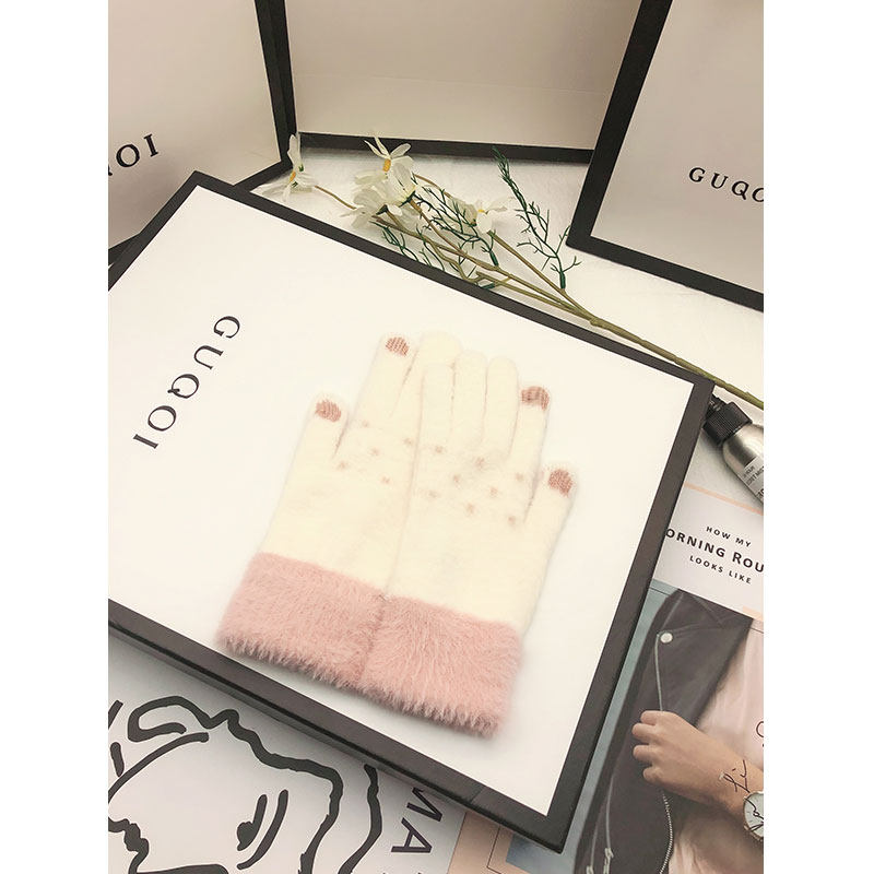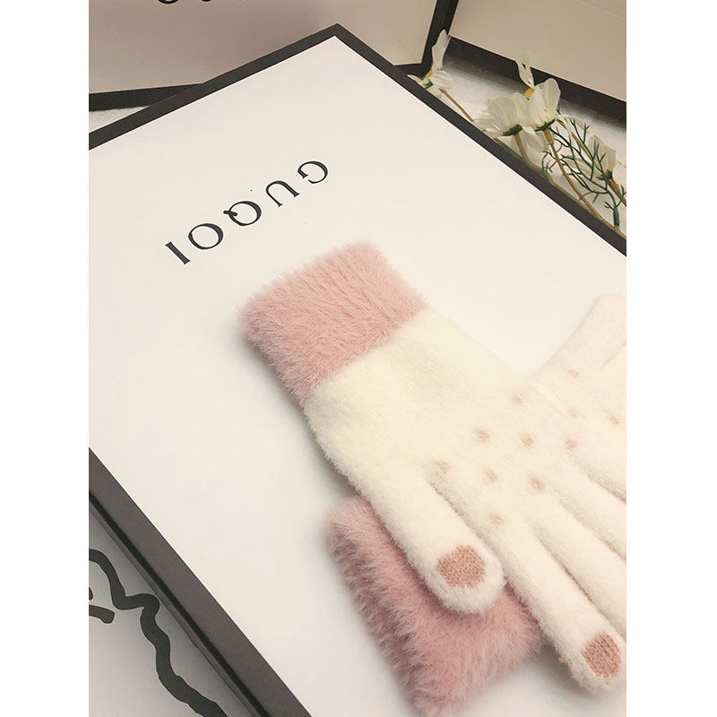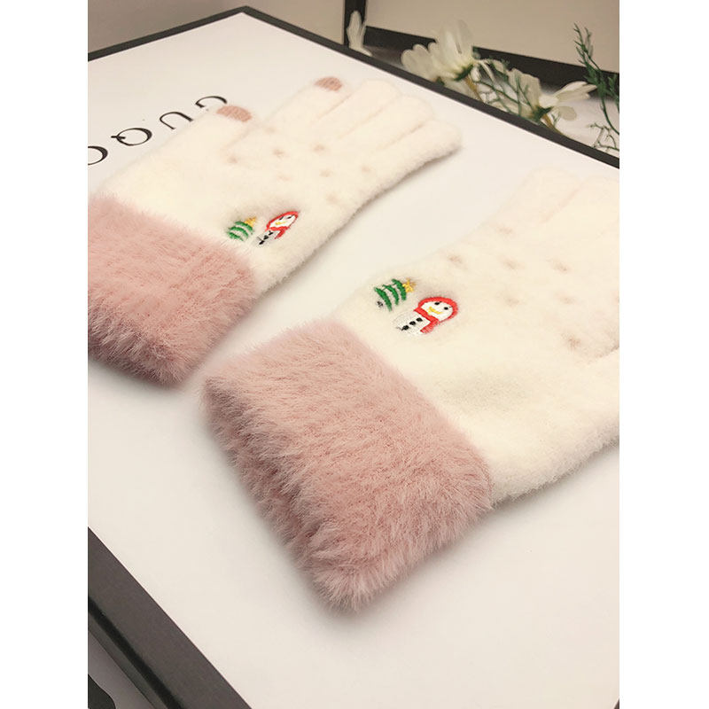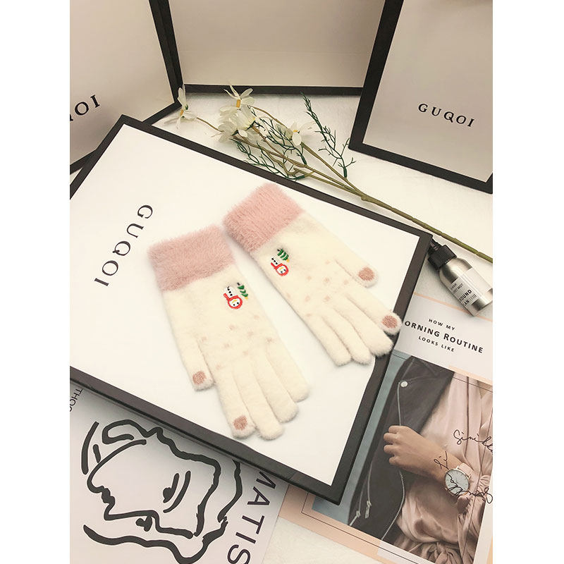 Autumn and winter women's velvet thickened warm and cold student touch screen Korean version of cycling cotton gloves women's winter cute tide