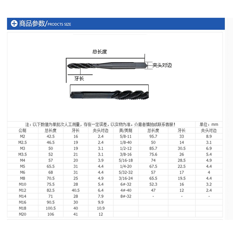 Spiral screw tapping screw tapping screw tap screw with screw tap M2-M20