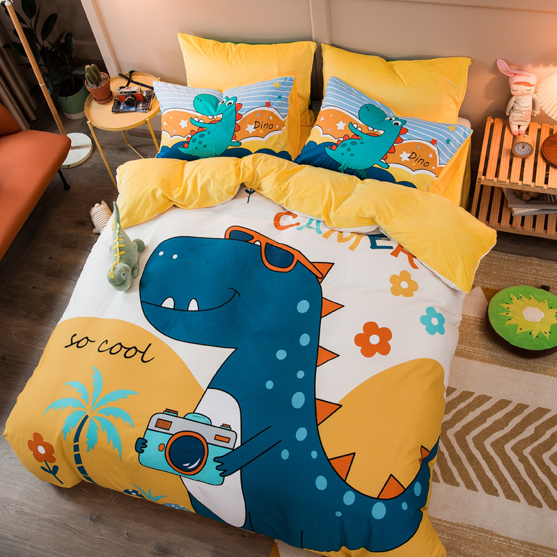Pure Cotton Gush Coral Suede Cartoon Four Pieces Thicken Flannel Full Cotton Linen Quilt face cover Children's three sets