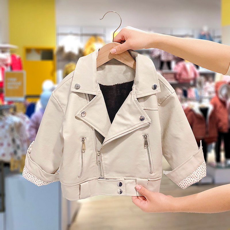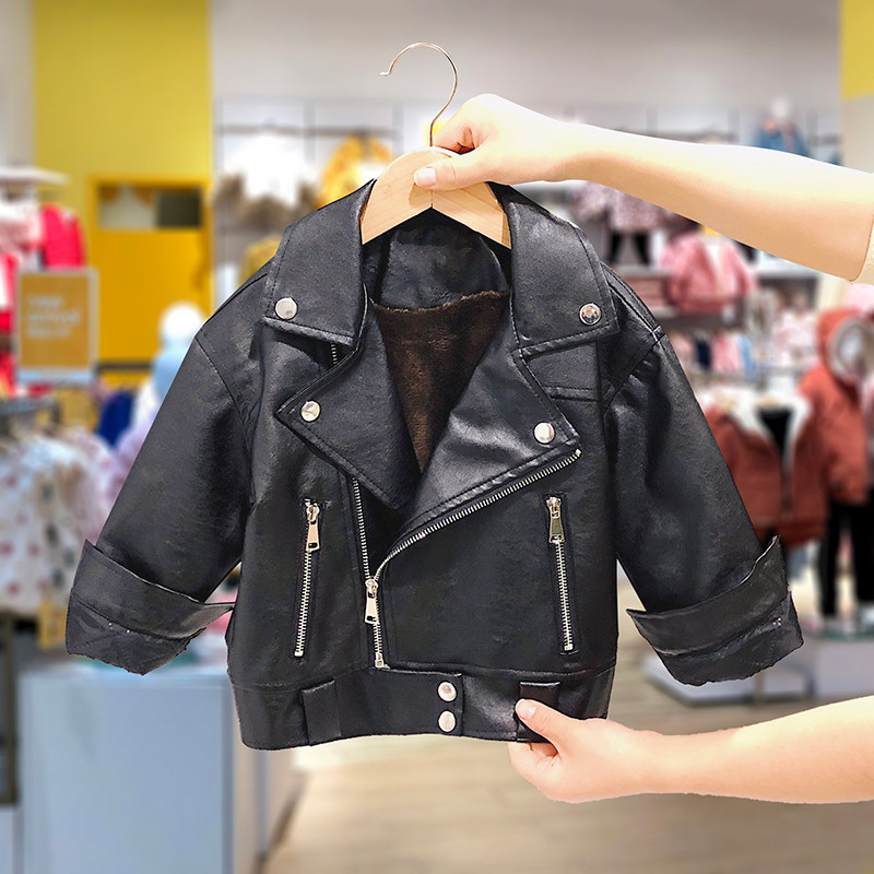 Snoopy baby leather jacket plus velvet 2022 winter new boys and girls jacket children's foreign style thickened clothes