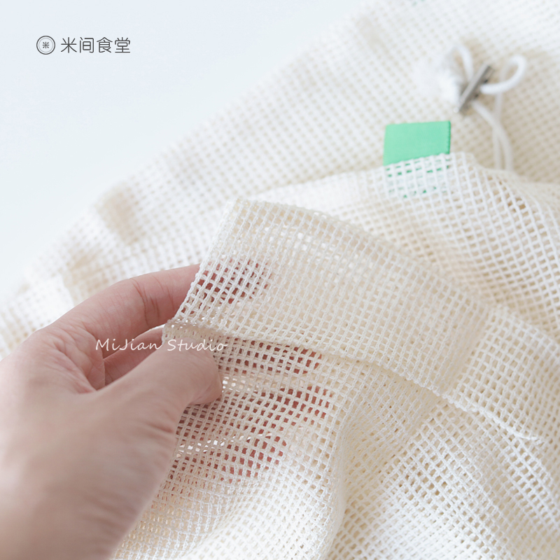 Mijian Environmentally Friendly Cotton Mesh Bag Portable Organic Cotton Kitchen Fruit and Vegetable Storage Bag Shopping Bag Mesh Bag