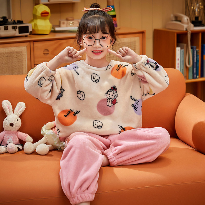 Flannel Sleepwear Autumn Winter Girl Coral Suede Thickening CUHK Boy Princess 15 Year Old Girl Suit Junior High School Student-Taobao