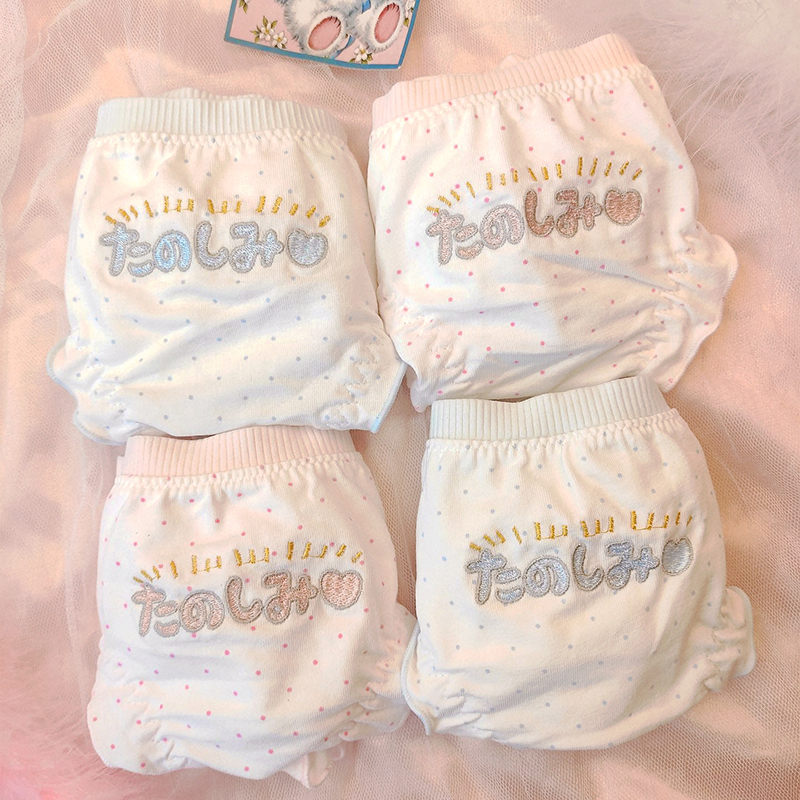 Love cycle Lolita underwear girl cute cotton Japanese briefs student wave point mid-waist love triangle