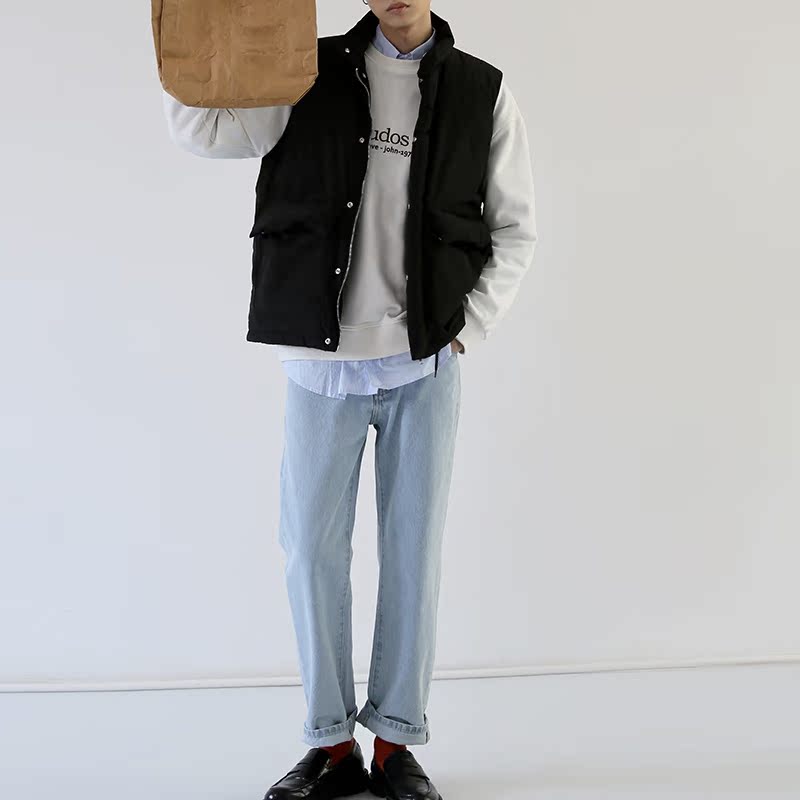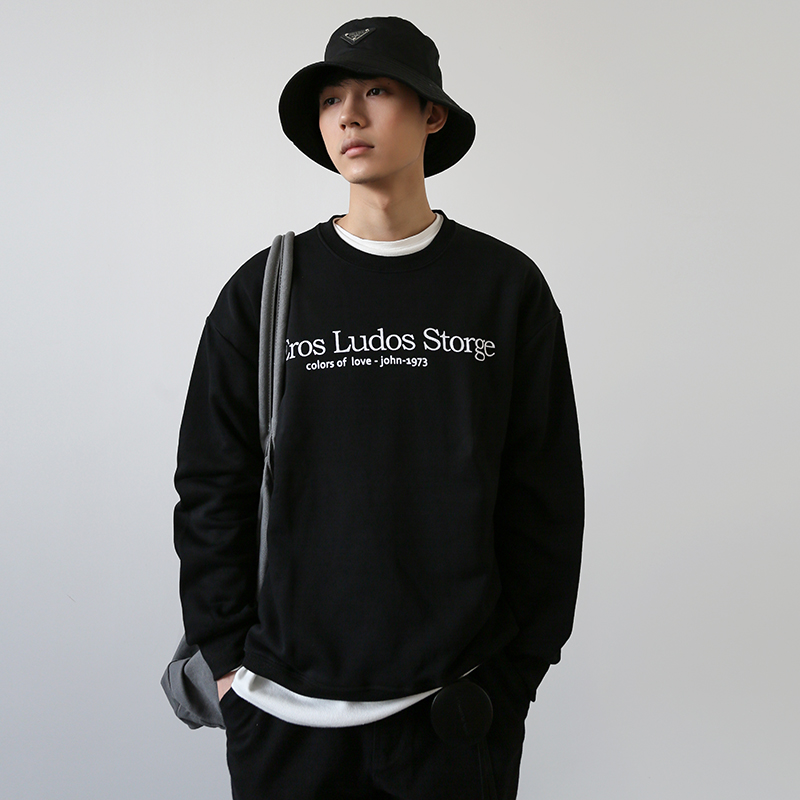 MOREFANS Korean style preppy cotton letter print long-sleeved sweater Trendy men's autumn bottoming shirt