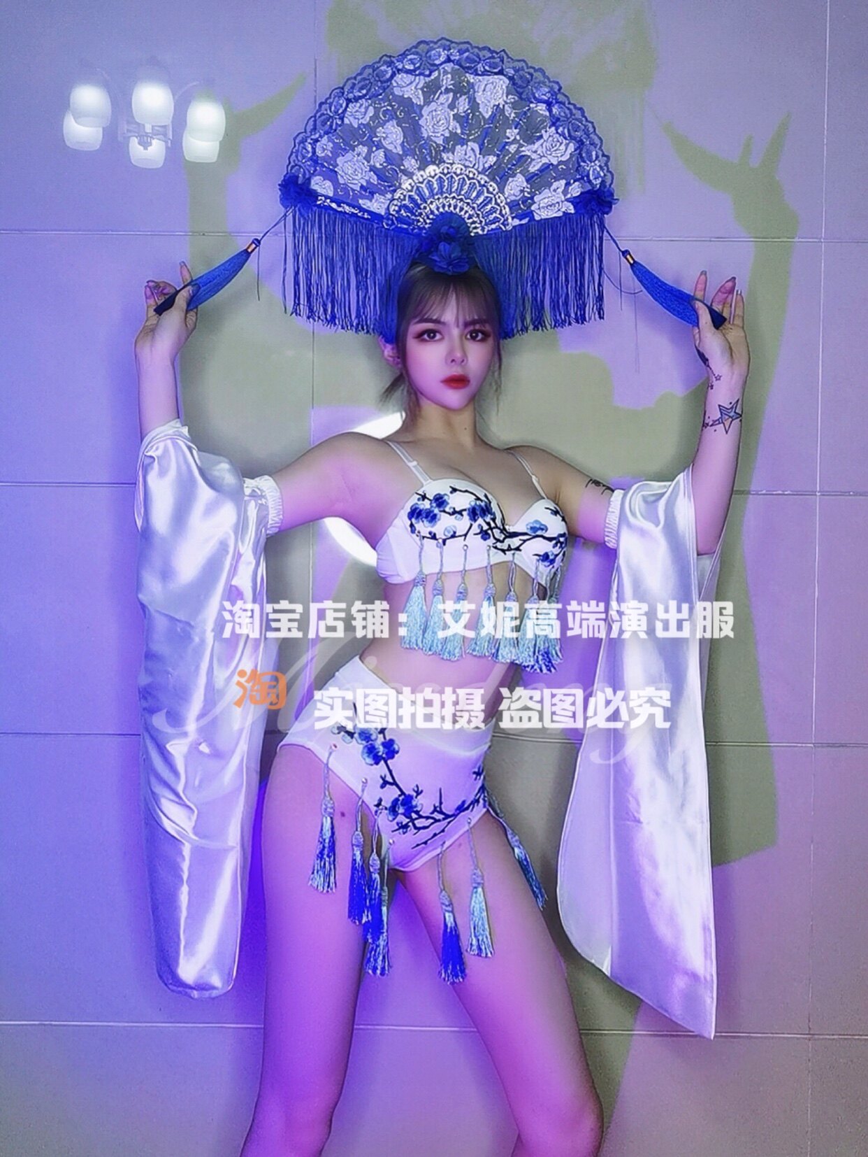 TT high-end nightclub bar singer djds dance team gogo retro Chinese style tassel headwear bikini suit