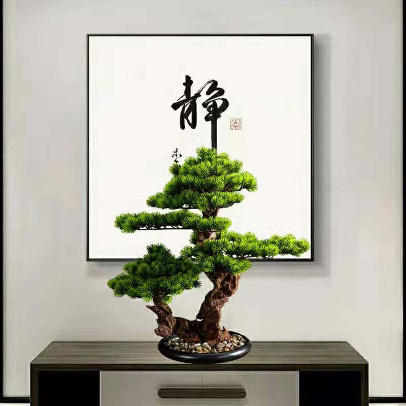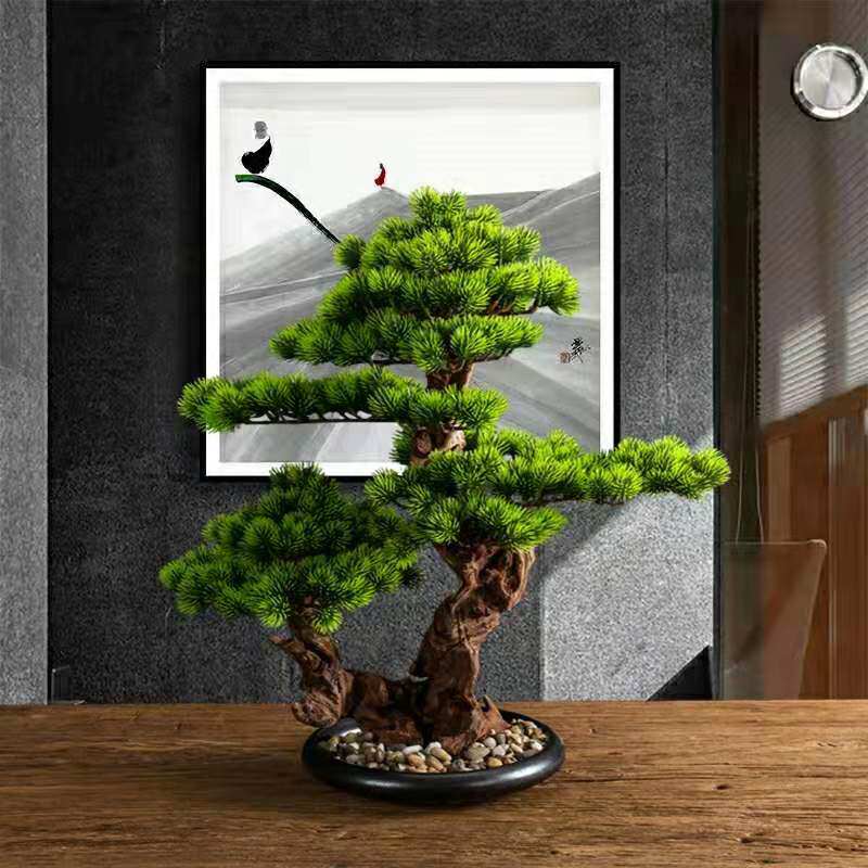 Chinese-style simulation welcome pine guest fake tree anti-real plant hall decoration TV cabinet potted desktop porch bonsai decoration