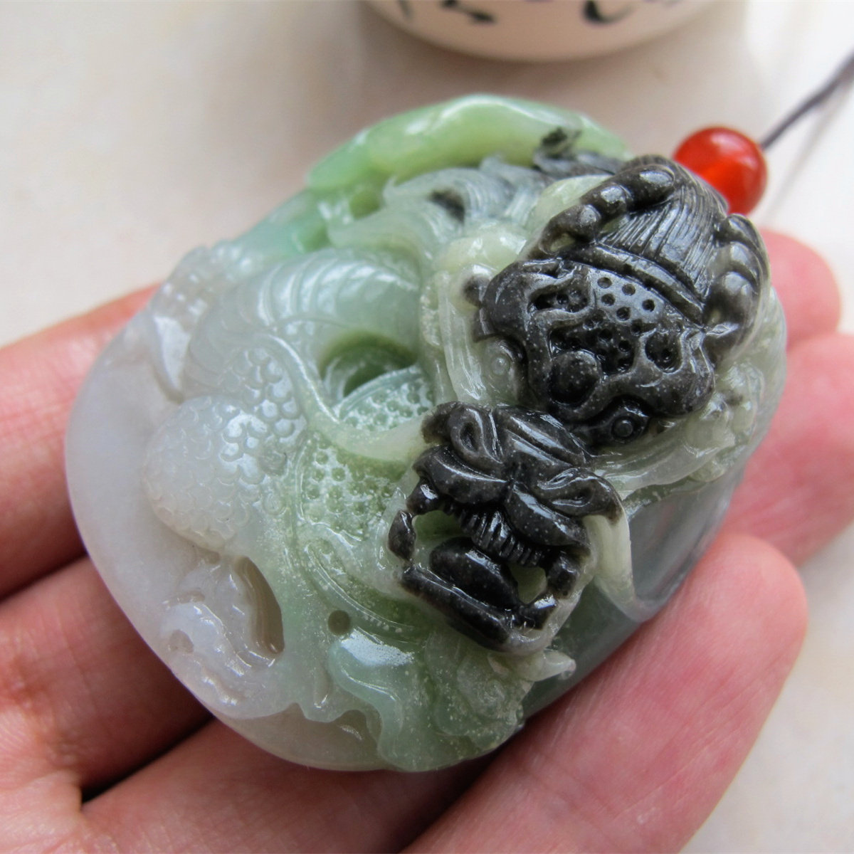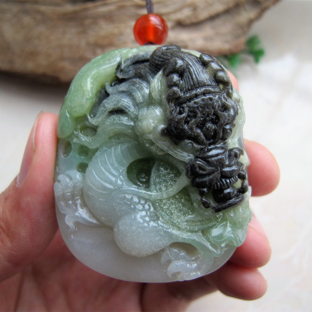 Tricolor Natural Hetian Jade White Jade Zodiac Dragon Pendant Qinghai Material Emerald Jade Black Leather Pendant Handle