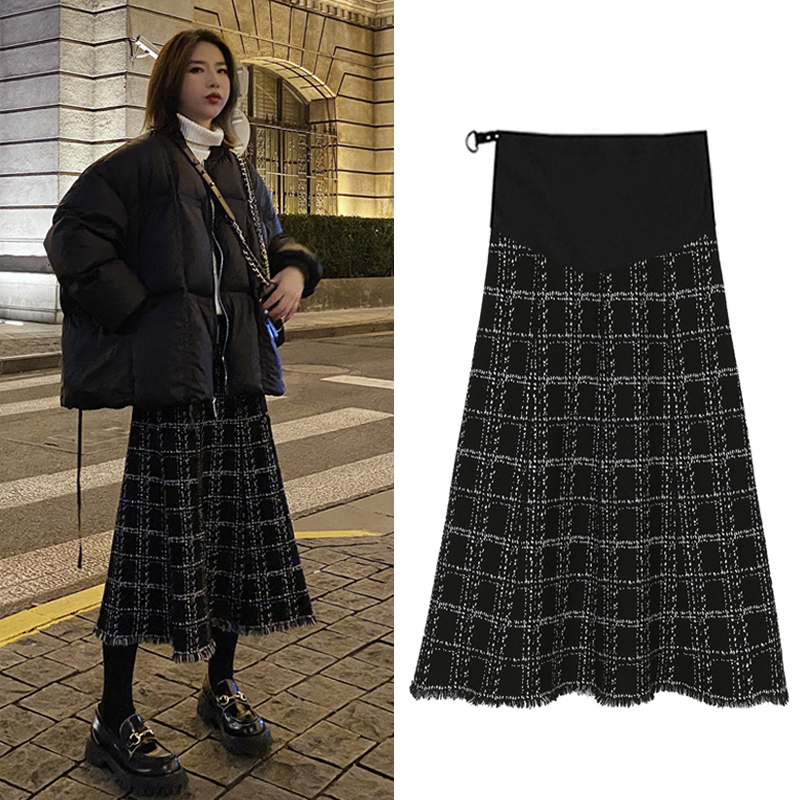 Pregnant Woman Winter Clothing 2021 New Women's Autumn Winter Nursery Bellied A Half Dress Medium Long Winter Tide Moms Plaid Half Body Dress