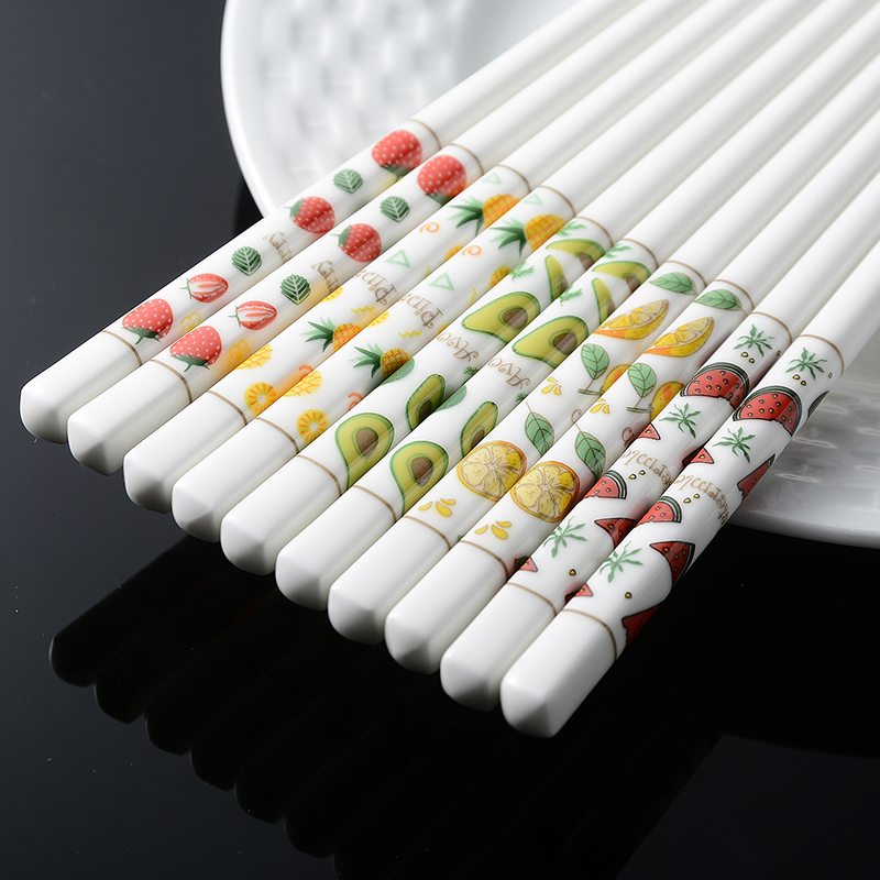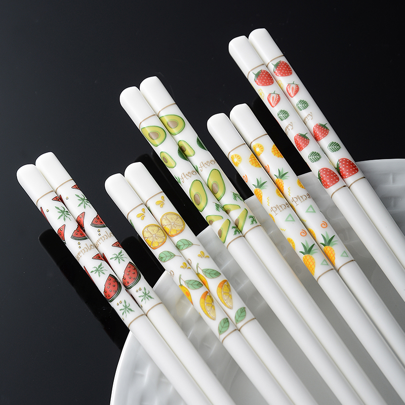 5 Double Ceramic Chopsticks Nets Red Chopsticks Fruit Pattern Single one person One chopstick Bone Porcelain Home Individuality Non-slip Weave