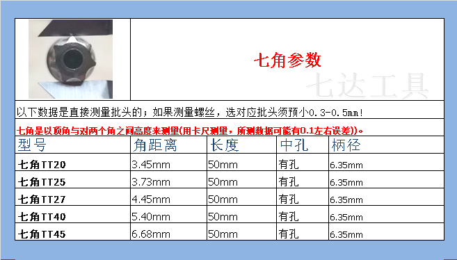 9 10 10 15 20 25 27 30 35 40 40 45 45 corners 5 TT20 25 27 40 45 45 Seven corner batch heads TT10 * 5