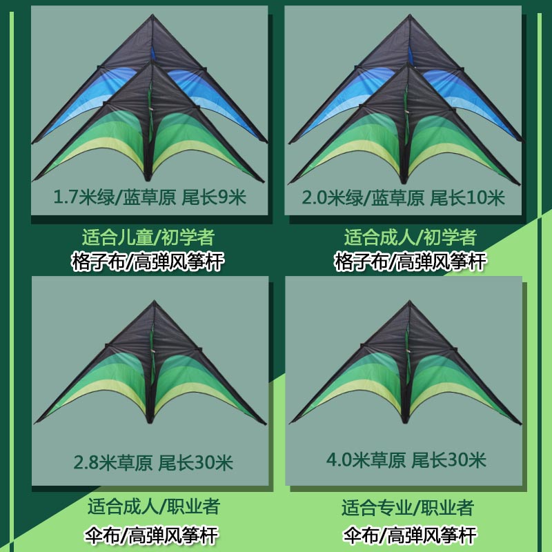 Small grassland + 50 m line plate 1.4 m grassland + 150 m line wheel 1.6 m grassland (kite only) 1.6 m grassland + 310 m line wheel 1.6 m grassland + 400 m line wheel 1.6 m grassland + 500 m line wheel 2 m grassland (kite only) 2 m blue grassland (kite only) 2 m grassland + 500 m line wheel 2 m blue grassland + 500 m line wheel 2 m grassland + 600 m line wheel 2 m grassland + 800 m line wheel 2 m prairie + 1000 m line wheel 2.8 m prairie (kite only) 2.8 m prairie + 600 m line wheel 2.8 m prairie + 800 m line wheel 2.8 m prairie + 1200 m line wheel 4 m prairie (kite only) 4 m prairie + 25 cm brake anti-reverse reel