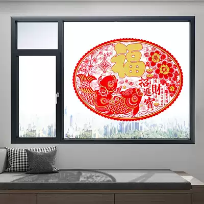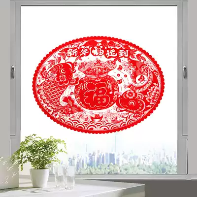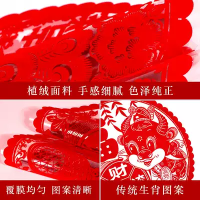 2021 Year of the Ox blessing window flocking noodles New Year zodiac paper-cut Spring Festival large Spring Festival decoration layout