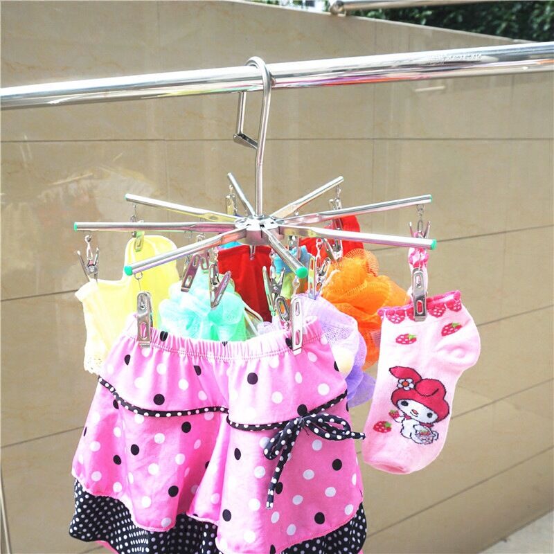 Folding Stainless Steel Sundeck Rack 16 Clip Windproof Portable Balcony Patio Lingerie Goods Drying Rack Multifunction Sundeck Clip