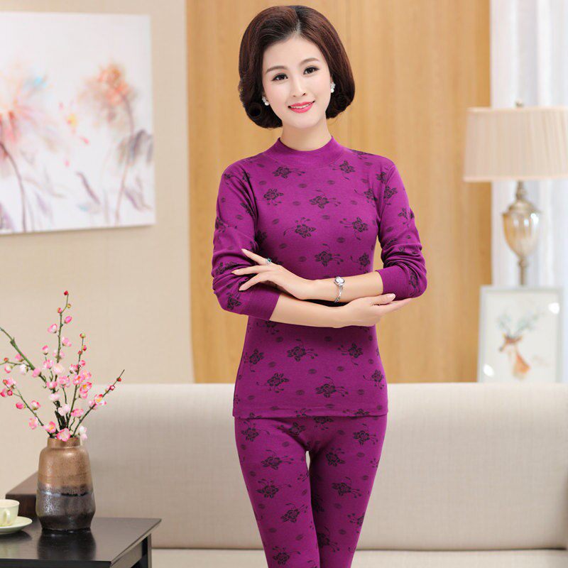 Autumn and winter middle-aged and elderly people's autumn clothes, sanitary pants, cotton mother's heating clothes, high-neck cotton sweater, pajamas pants set
