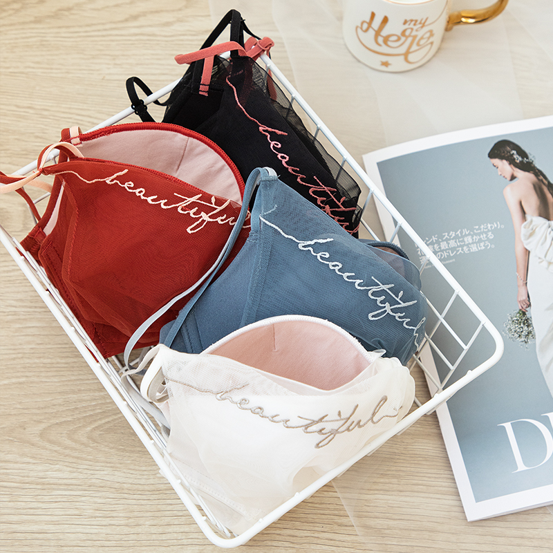 Style lingerie pure color Sexy web yarn Embroidery Sweet Merise Lace No Steel Ring Underwear Suit Comfort Thin and Autumn Maiden