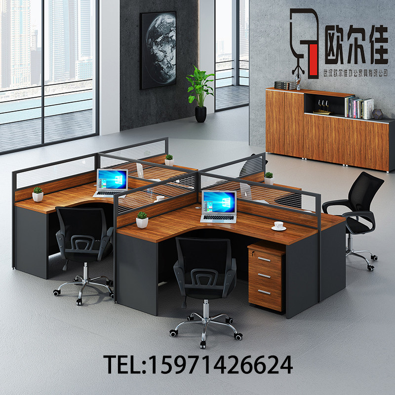 Staff office desk and chair combination 4-person staff table Wuhan office furniture screen workstation table partition desk - Taobao
