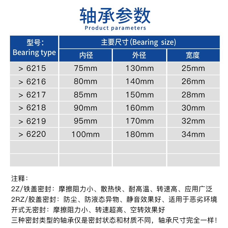 HRB high-speed motor bearing 6215 6216 6217 6218 6219 6220Z RS 2RZ