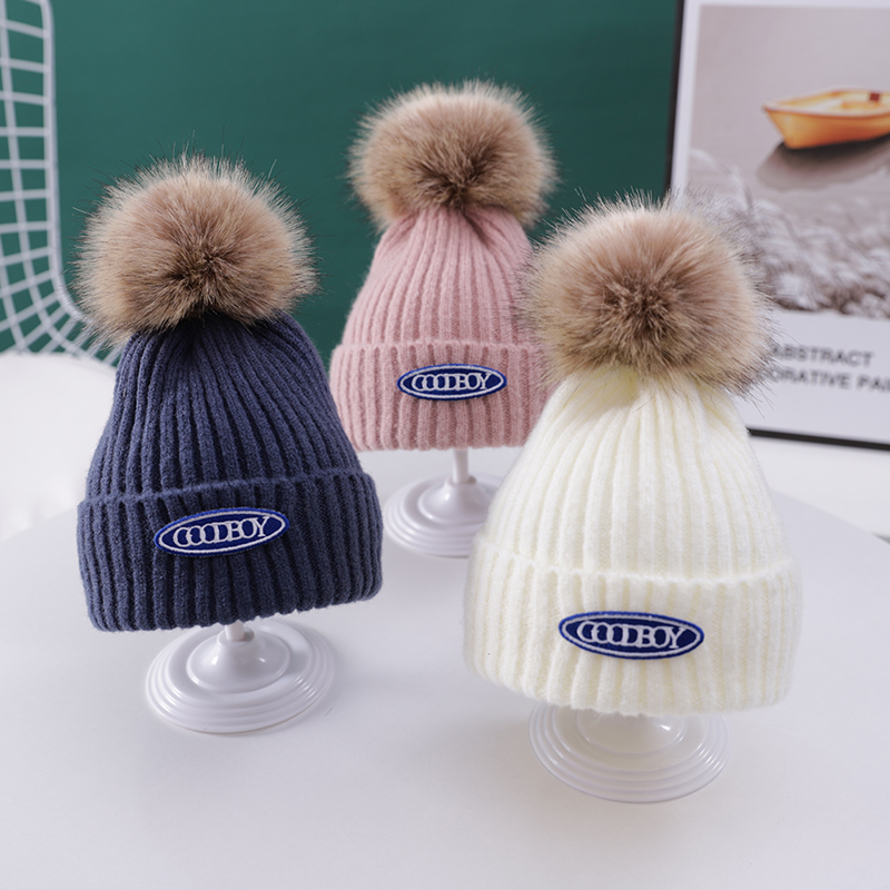 Children's hat Autumn winter baby girl beanie hat plus fleece warm baby pull-over hat winter boy knit hat tide