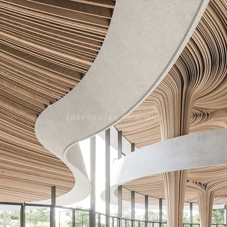 Indoor creative art wooden ceiling custom design special-shaped aluminum ceiling decoration curved aluminum square pass ceiling device