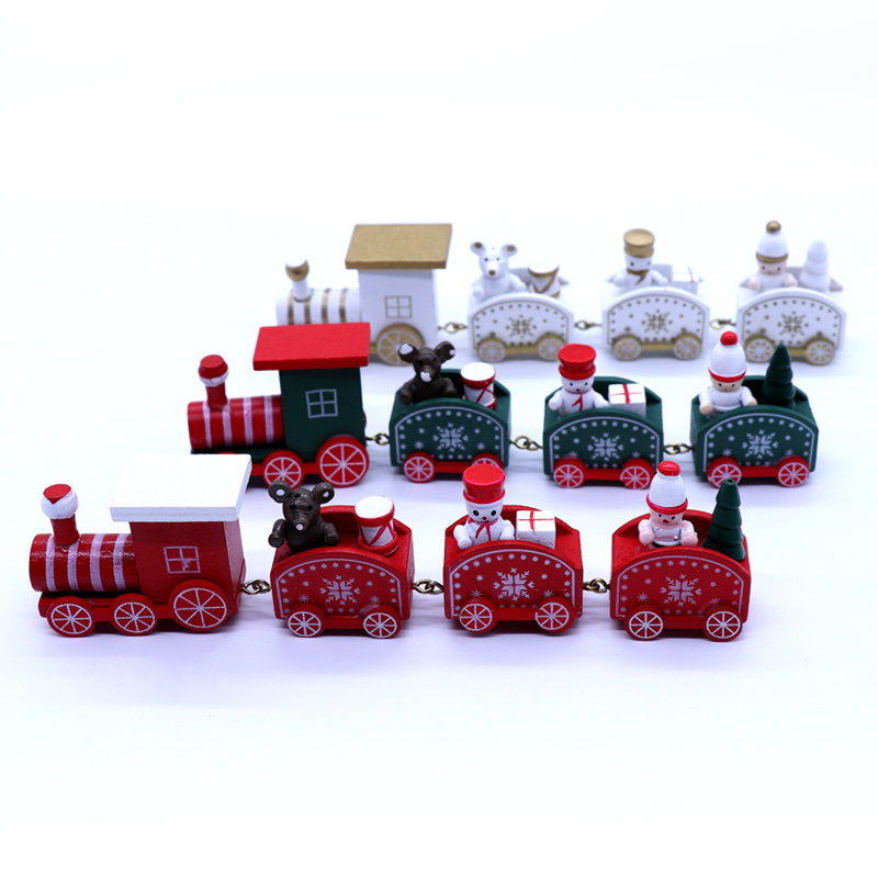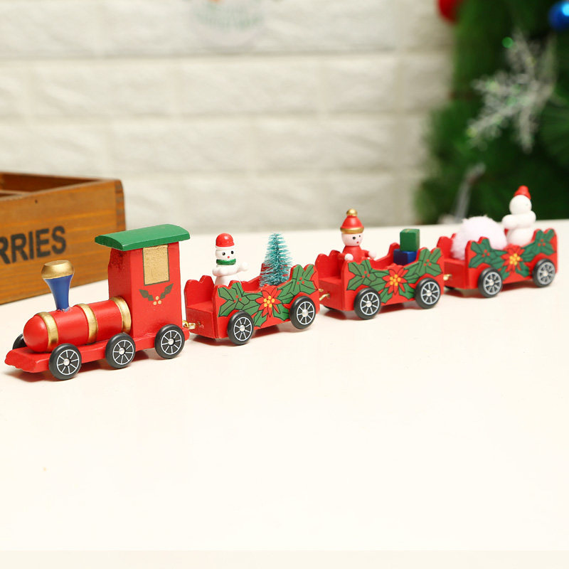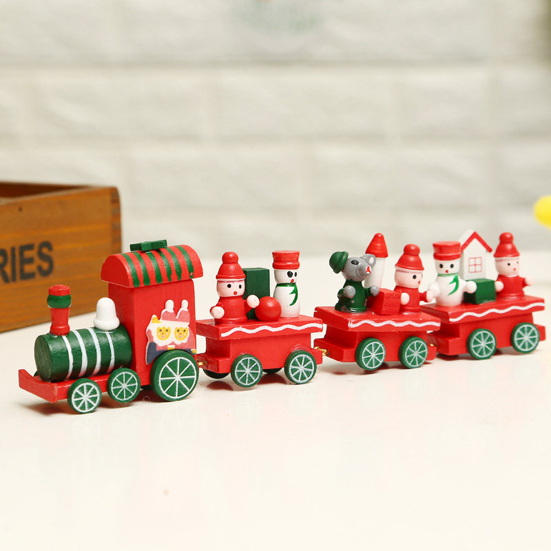 Christmas decorations Mini train Green leather desktop ornaments Cartoon Wooden Thomas children's small toy gift
