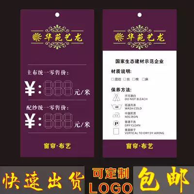 Fabric new dark blue wine red price tag elevator home textile paper card listing curtain tag custom
