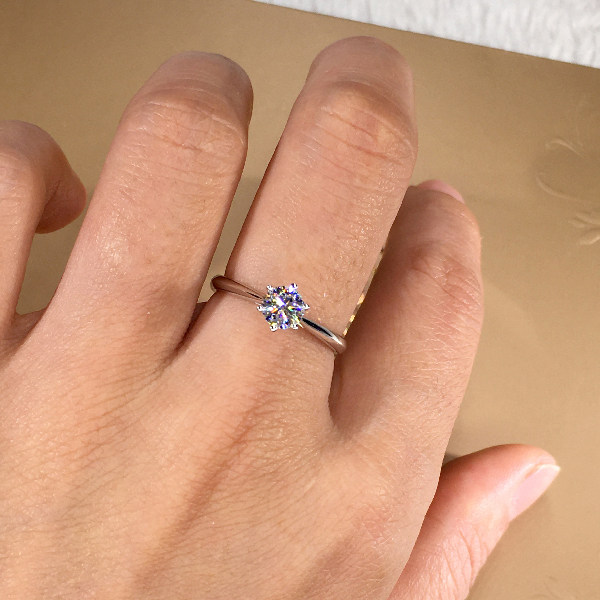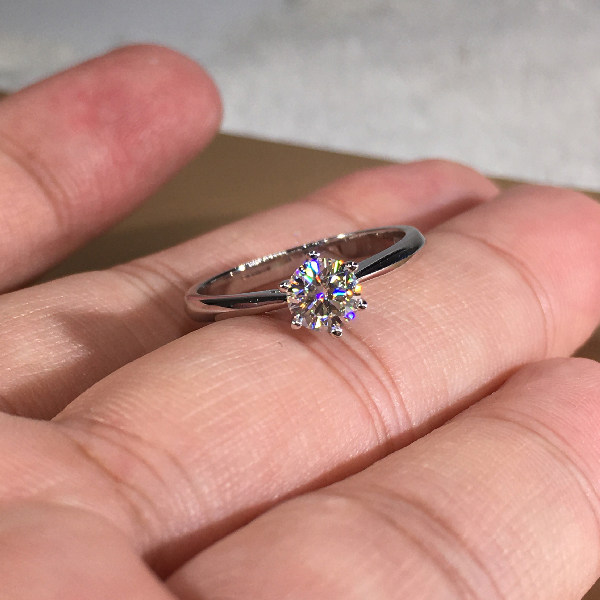 18k gold natural diamond crown six paws 30 points 50 Classic six-claw couple wedding to the ring-ins light lavish minimalist