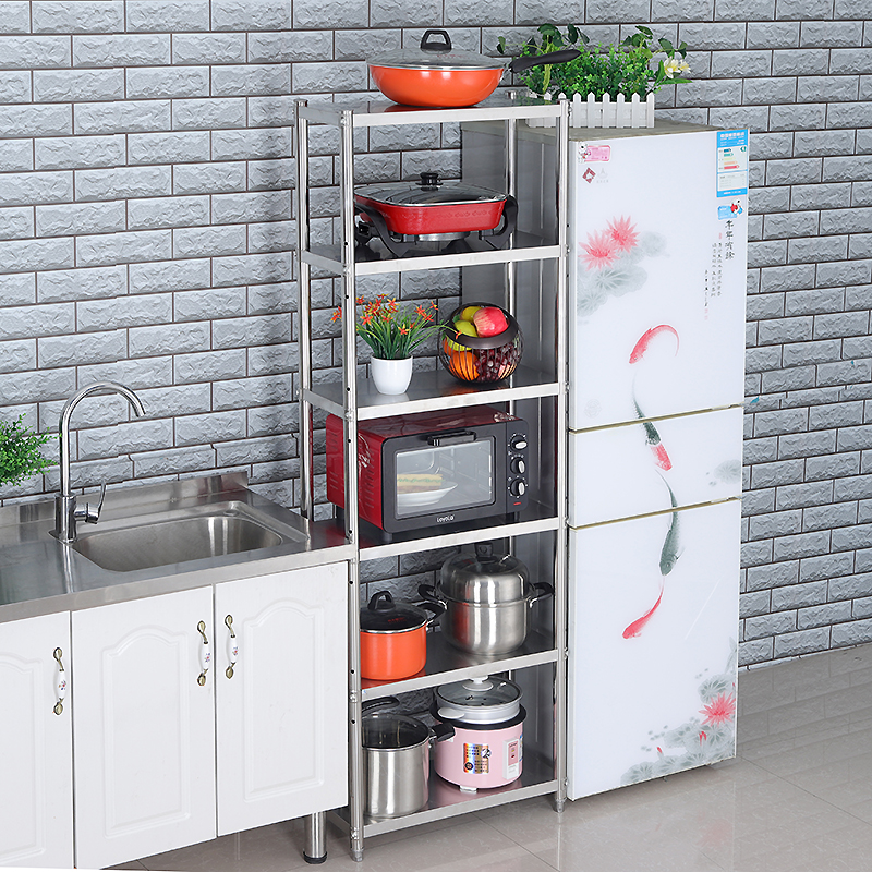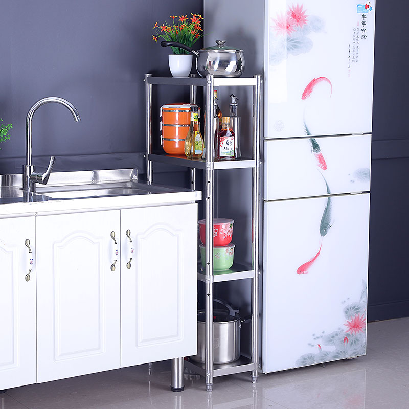 Stainless steel kitchen rack floor-to-ceiling multi-layer width 20 25cm gap storage rack refrigerator gap pot rack