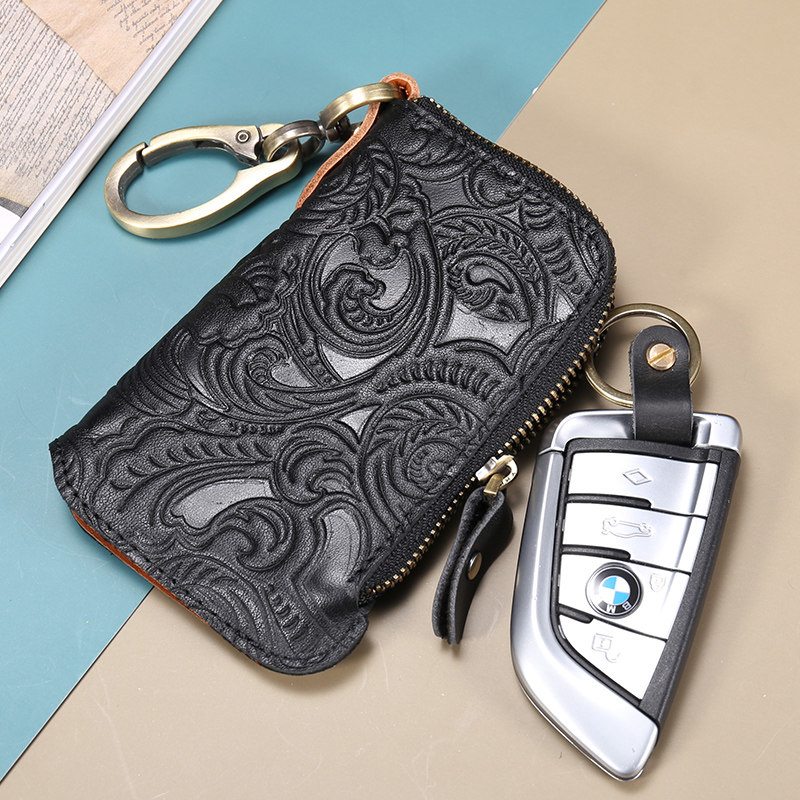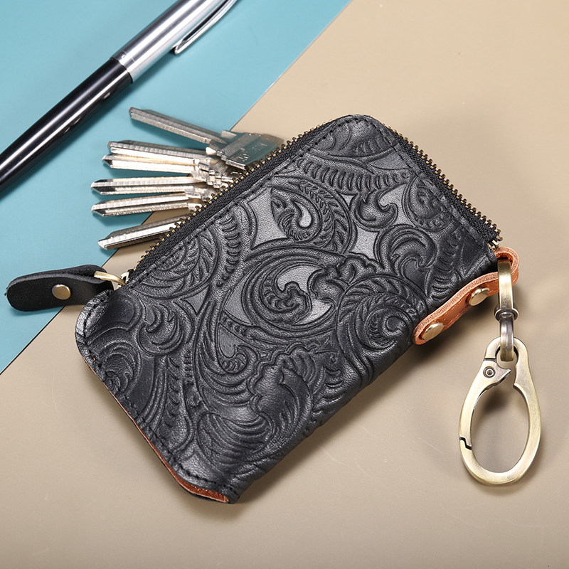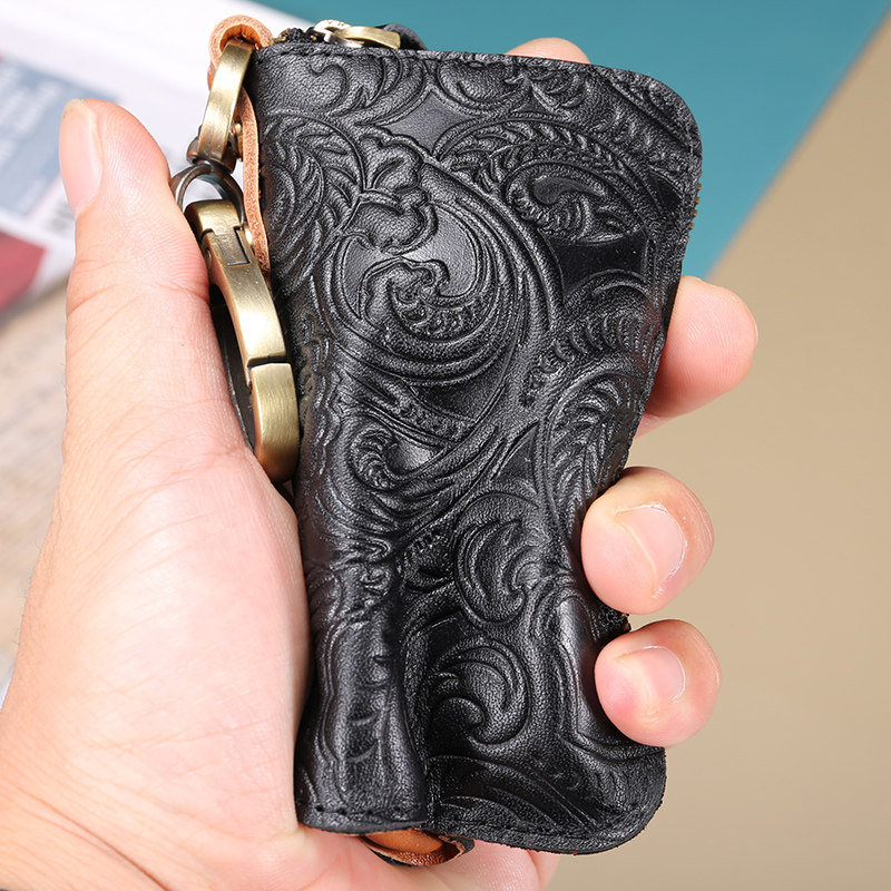 Original printed leather key bag men's and women's coin purse card bag large-capacity leather home car key bag tide