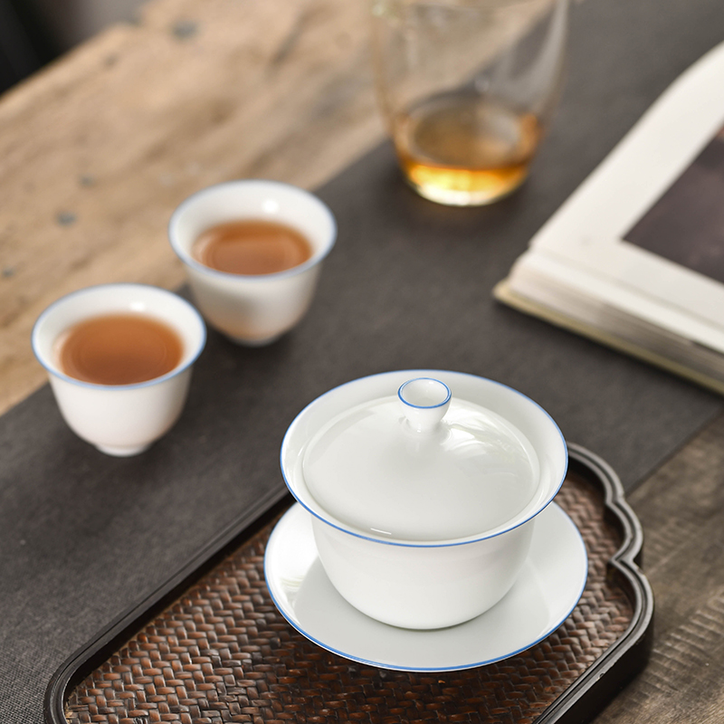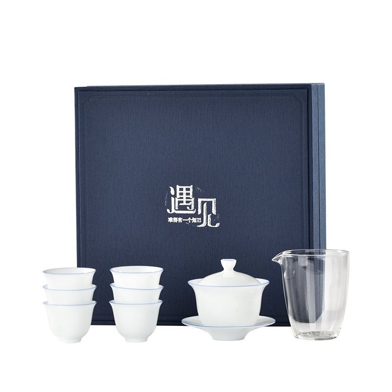 Jingdezhen Kung Fu Tea Cup Cover Bowl Tea Set Group Gift Box Set Household Small 6 People Modern Minimalist Thin Tire Porcelain Tea