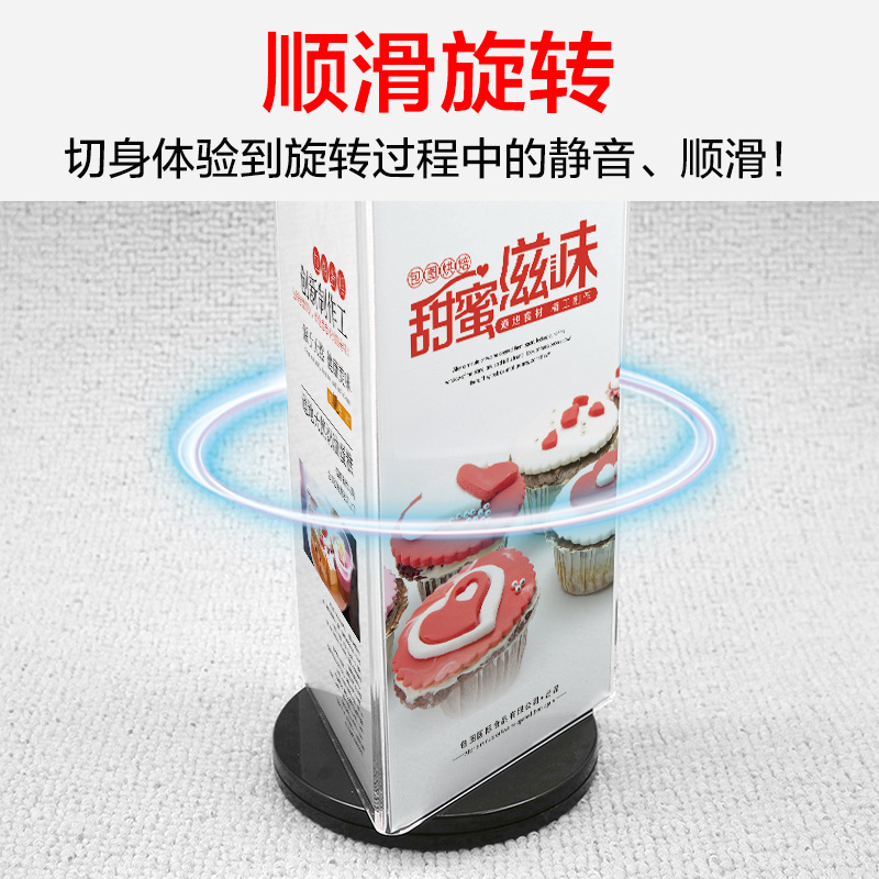 Three-sided rotating table card Table top Acrylic card double-sided triangle card restaurant drinks wine card display stand Desk sign a4 assembly model menu price display card Publicity table card table card stand