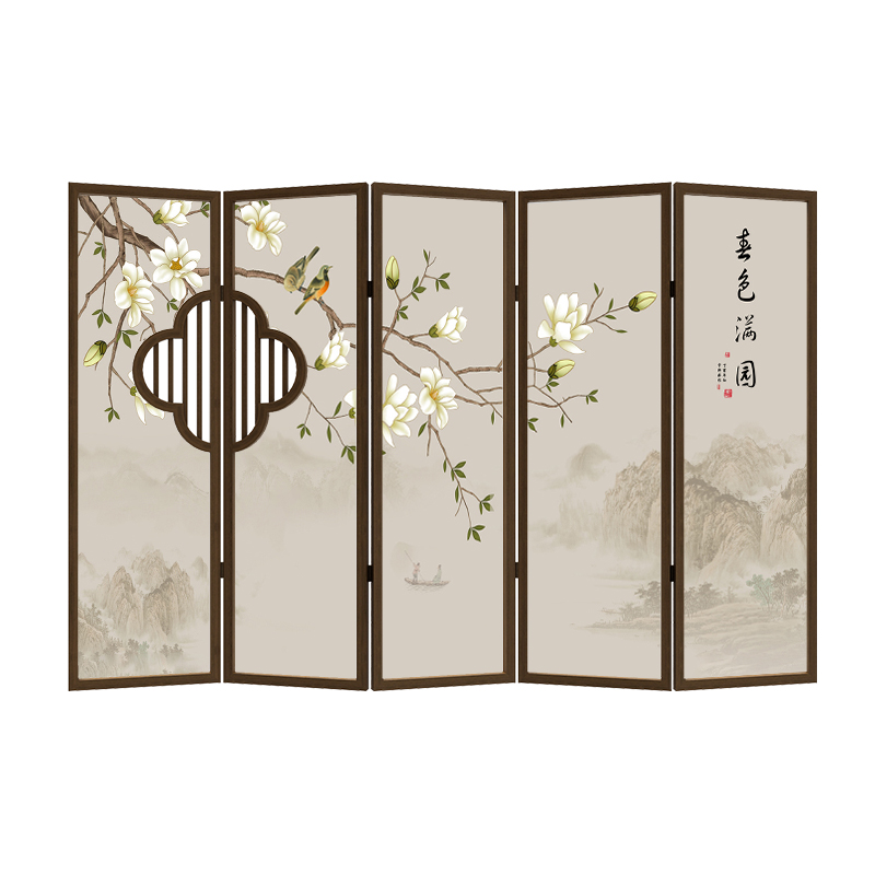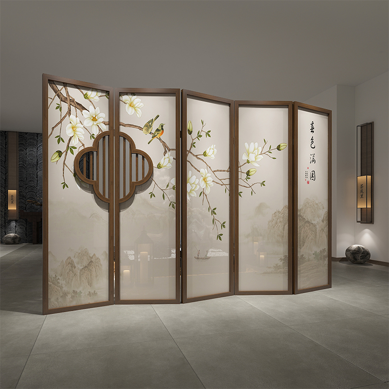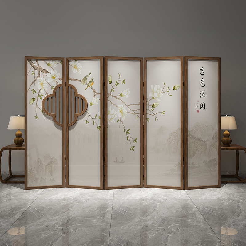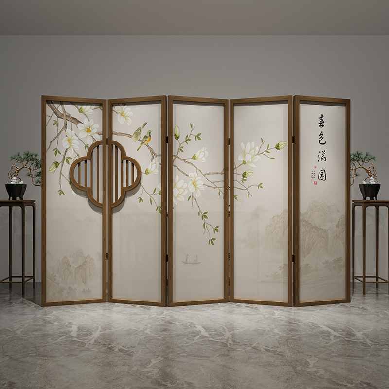 Chinese-style flower and bird screen folding mobile grille porch solid wood hollow partition living room bedroom simple modern folding screen