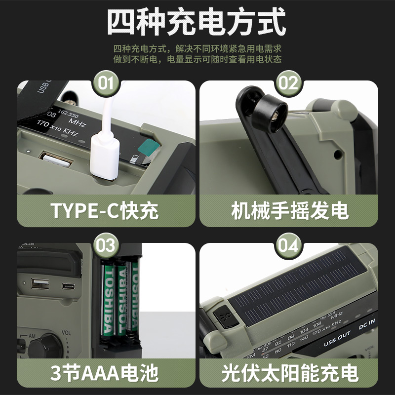 Hand-cranked power generation flashlight radio outdoor multi-functional disaster prevention emergency rescue family emergency material reserves