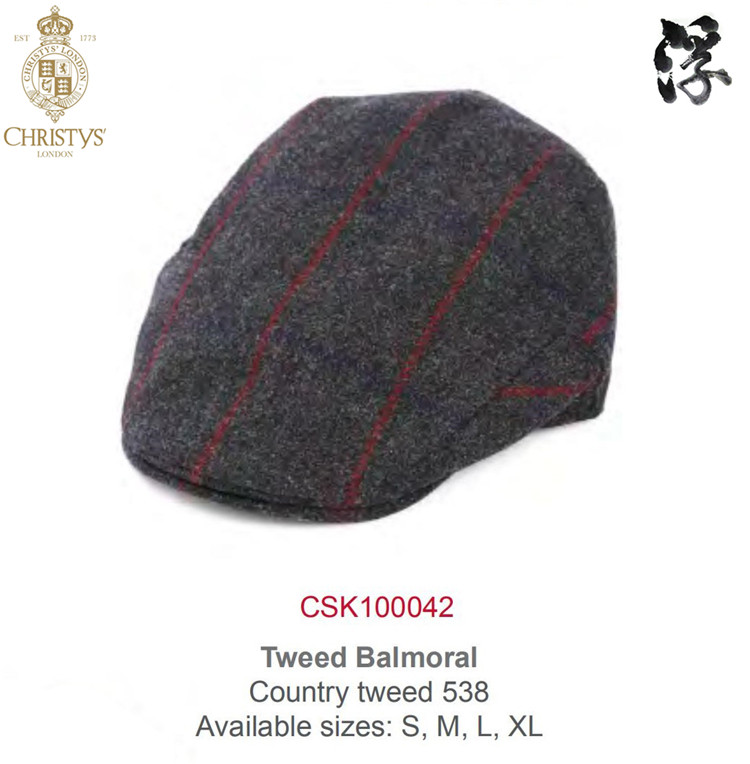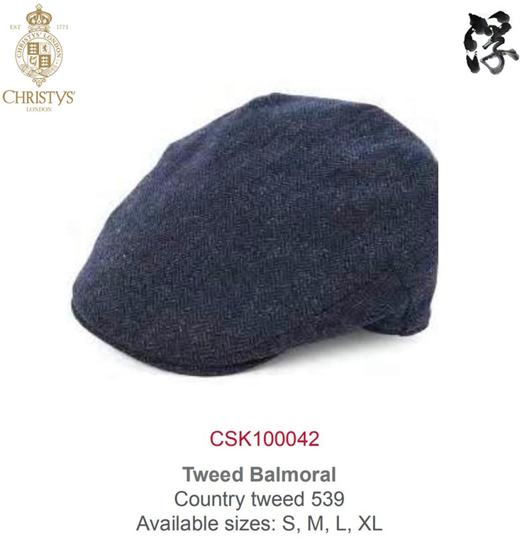 Christys Christy TWEED BALMORAL fish bones, UK, and horizontally flattened round caps