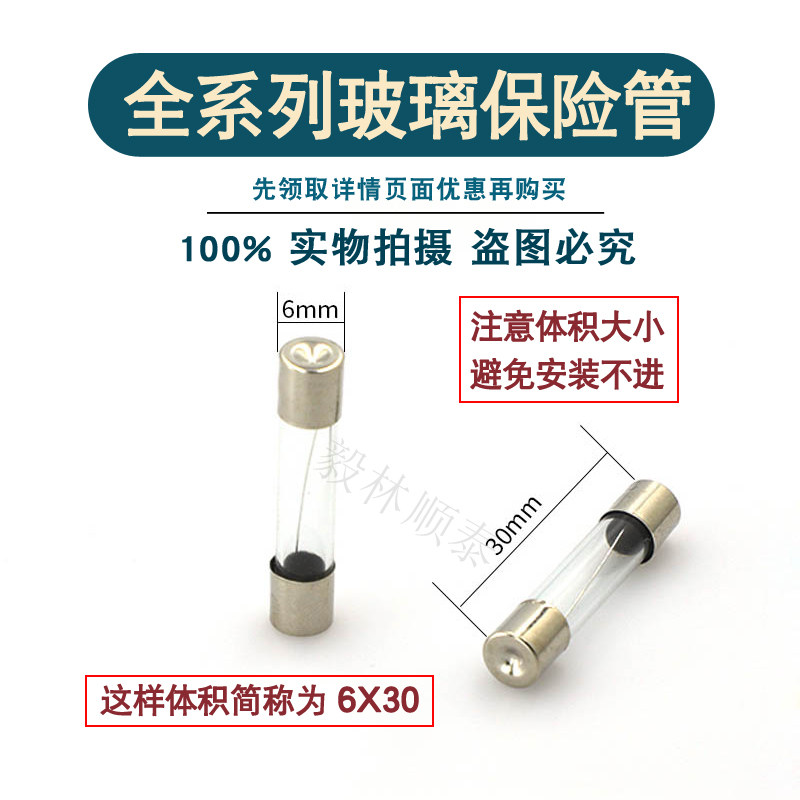 Glass fuse tube 5 * 20 1-30A 6 * 30 on-board cigarette lighter charger wagon recorder 250V