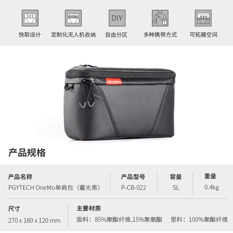 PGYTECH Grand Frontier Drone's air2S containing single shoulder photography package Professional OneMo portable single eye micro single eye camera Canon Nikon digital camera bag Mavic2 with screen remote