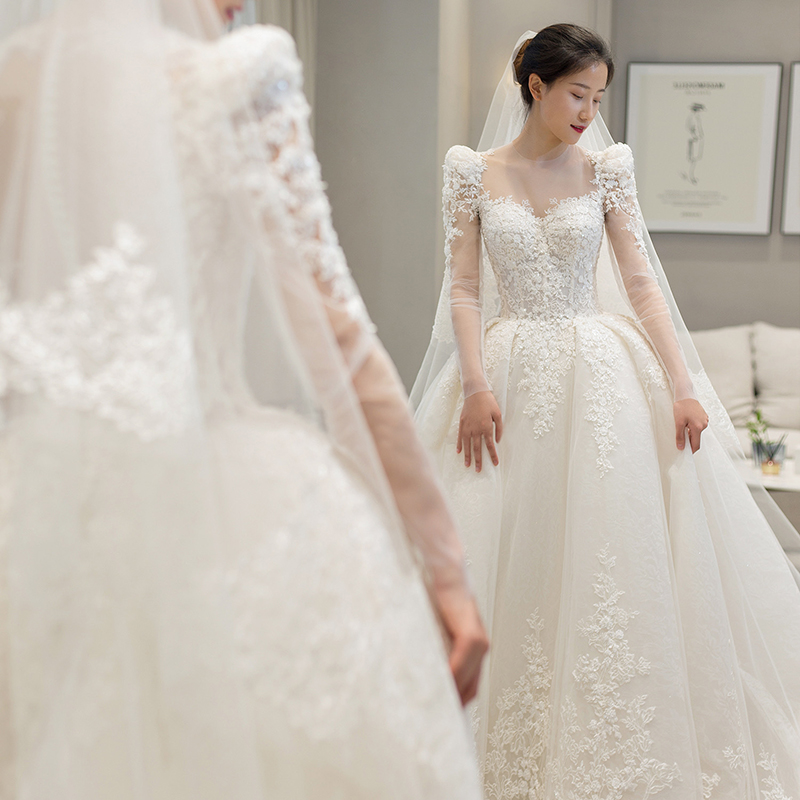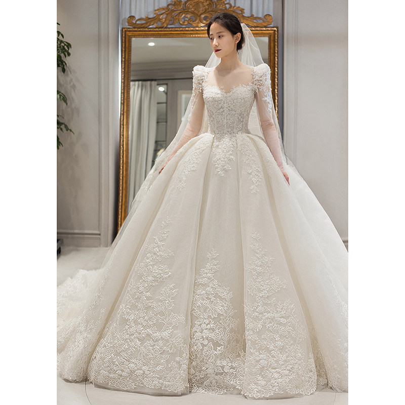 Long-sleeved main wedding dress 2020 new bridal temperament trailing forest department super fairy dream luxury small man 2021